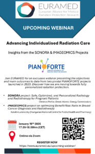 EURAMED’s free winter webinar will present 2 projects advancing individualised radiation protection for breast cancer and pregnant patients, SONORA and IMAGEOMICS, which were selected for funding under the PIANOFORTE initiative’s open calls. Please see the flyer below or our Upcoming Webinar page for registration and programme information.